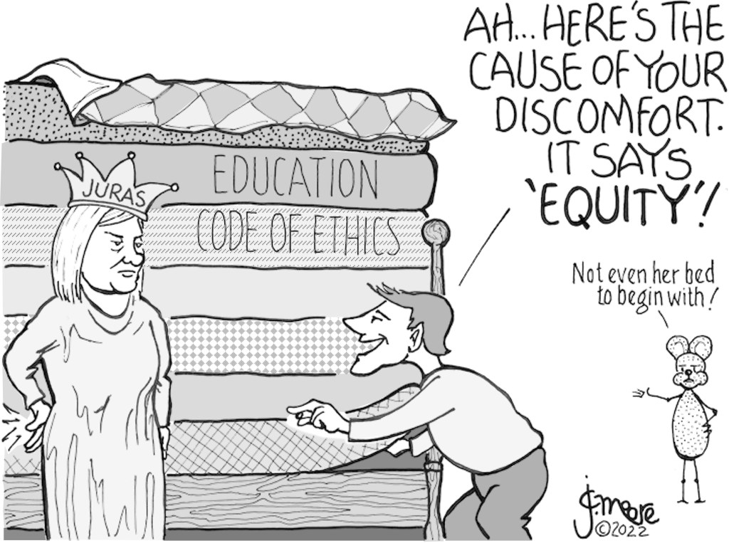 The Goobernor and his lieutenant, Kristen Juras, are all in a lather about the inclusion of ‘equity’ in the educator code of ethics. So much so, they got their appointed goons on the Board of Public Education to assert control over the code.