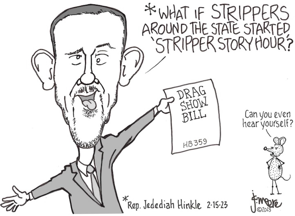 Before passing HB 359 out of committee, Republicans doubled down by adding “topless dancers, exotic dancers, strippers” to the definition of “drag performance.” In support of the amendment, Hinkle gave this example …