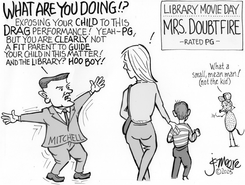 Still a drag … April 14, 2023 ~ jcolemanmoore HB 359, sponsored by Rep. Braxton Mitchell (R-Columbia Fallacy), seeks to ban drag performances in front of minors. Share this: Click to share on X (Opens in new window) X Click to share on Facebook (Opens in new window) Facebook Like Loading... Related Published by jcolemanmoore View all posts by jcolemanmoore