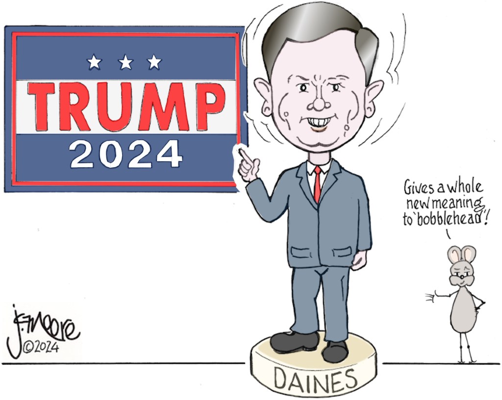 The Daines doll June 20, 2024 ~ jcolemanmoore This is a reworking of a cartoon from May 2023. Share this: Click to share on X (Opens in new window) X Click to share on Facebook (Opens in new window) Facebook Like Loading... Related Published by jcolemanmoore View all posts by jcolemanmoore