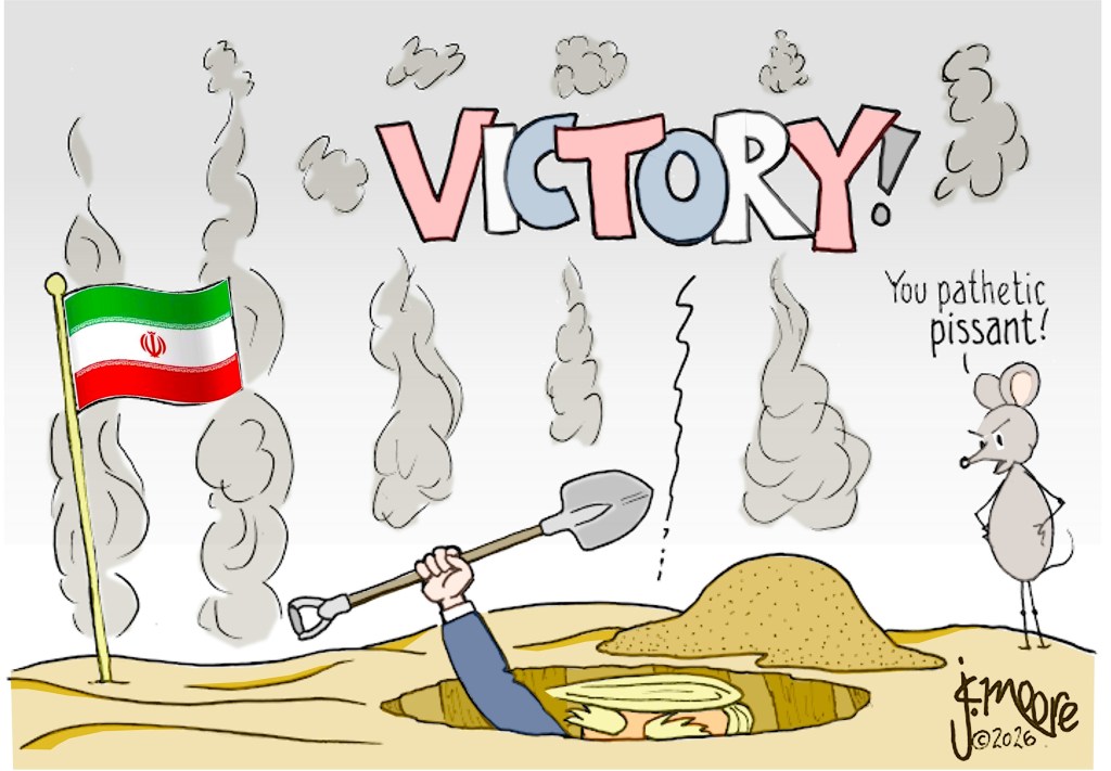The speech bubble is an exact ‘take’ on this entire debacle with Iran, the surrounding countries, and pretty much every other nation on earth who has to eat the increased fuel prices through no fault of their own. “Ego-driven”… good word.