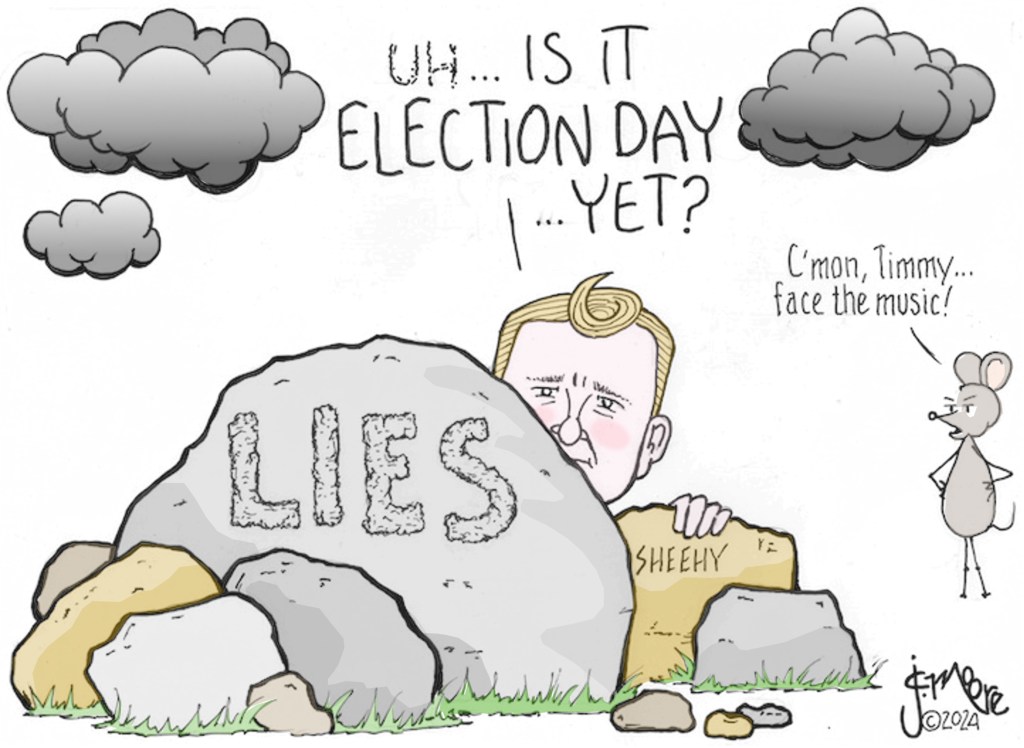 The Sheehy campaign apparently doctored the video spot to conceal the logo on his shirt of the Property and Environment Research Center. PERC is a Bozeman-based ‘think tank’ that backs privatizing federal lands and opposes Montana’s stream-access laws; Sheehy once served on its board. SOURCE: HuffPost