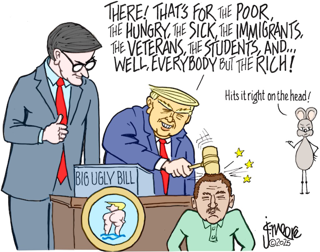 At the signing of the Big Ugly Bill, Speaker Johnson gave Trump the gavel he used to mark passage of this disastrous legislation. Seems symbolic of the Congressional Republicans’ complete capitulation.